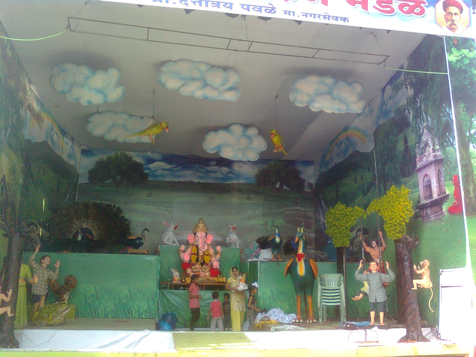 from the below photograph u will get an idea of how big the Ganesh pendal is … & the theme is also carefully done …