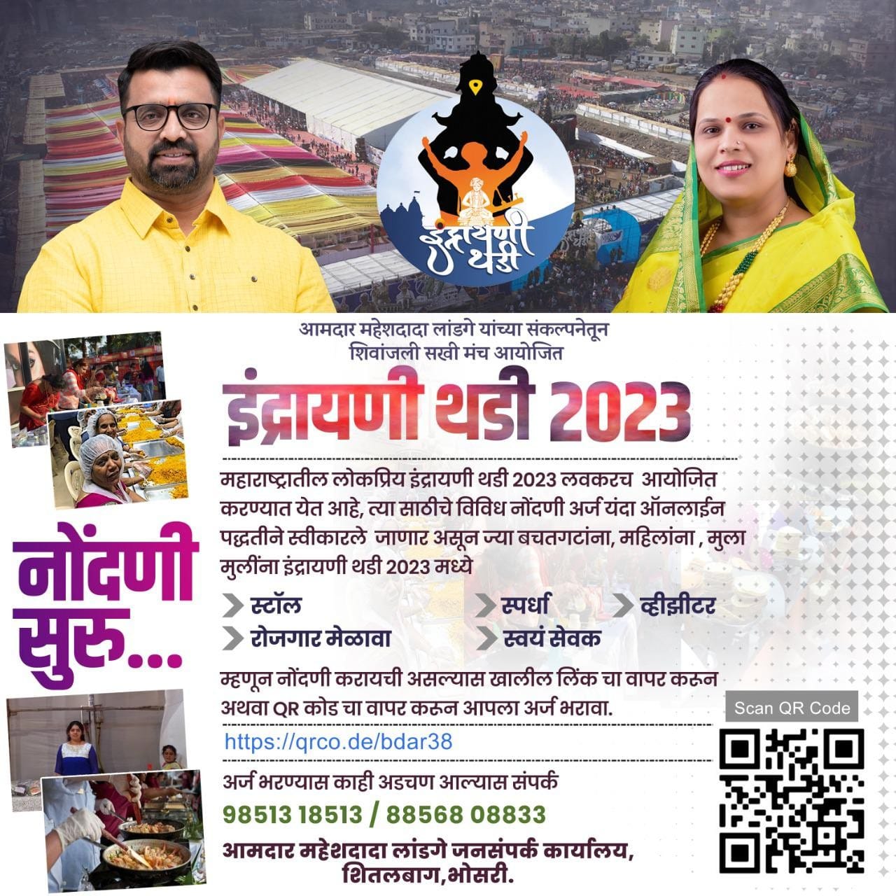 Indrayni Thadi Jatra will be happening in the Bhosari area of Pimpri Chinchwad. This Jatra (meaning fair) is a way of enjoyment in Indian villages, the same theme is being picked up by Shri Mahesh dada Landge who thought of motivating women to enter into entrepreneurship by using the traditional skills and culture that they own. Providing a way for people to enjoy as well as provide a new identity to women.